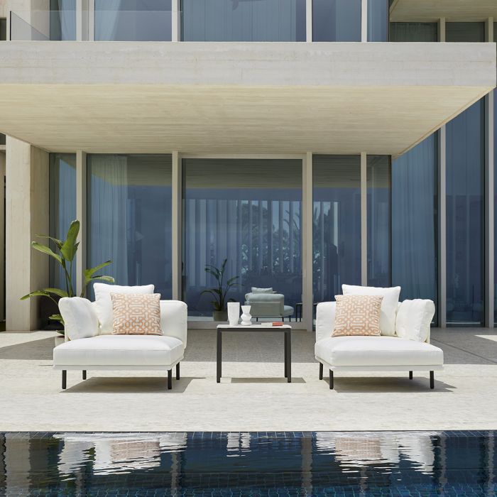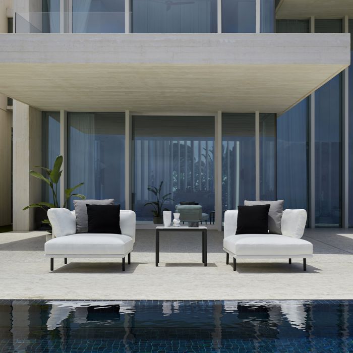 « Avec Long Island, mon objectif a été de la rendre désirable grâce à une conception axée sur les détails et bien finie, à l’image d’un meuble d’intérieur », explique le designer Christophe Pillet. Il ajoute : « j’ai cherché à créer la sensation que ces pièces existent depuis toujours ». Des formes droite et des lignes fines définissent la silhouette de cette collection modulaire de canapé d’extérieur. Dotées d’une grande simplicité chercher « à apporter une élégance universelle et un grand confort », avoue C. Pillet. Cette collection chercher à devenir un nouveau classique. Les treize pièces qui la composent sont complétées par trois tables avec une structure en aluminium.