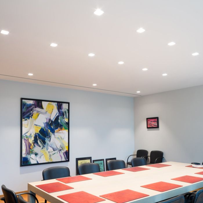 Lotis Square est une version carrée compacte de notre série Lotis Round très populaire. L’ampoule est insérée au fond d’une alvéole conique, ce qui la rend moins visible. Une version IP est aussi disponible pour une installation dans les pièces et environnements humides. Il existe aussi une version Lotis Square avec LED, qui utilise notre module M-LED 50. Celle-ci vous permet de choisir parmi un large éventail de couleurs d’éclairage et trois angles de faisceau différents (étroit, moyen ou large).