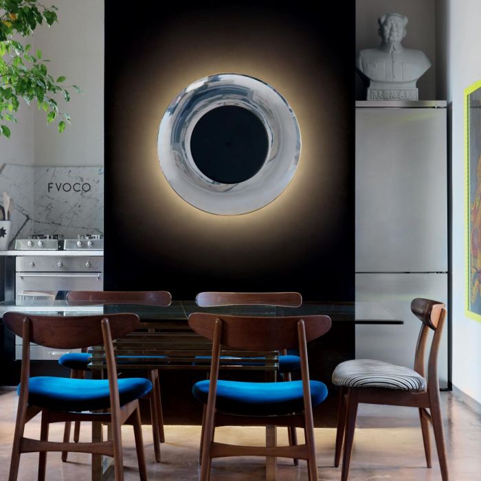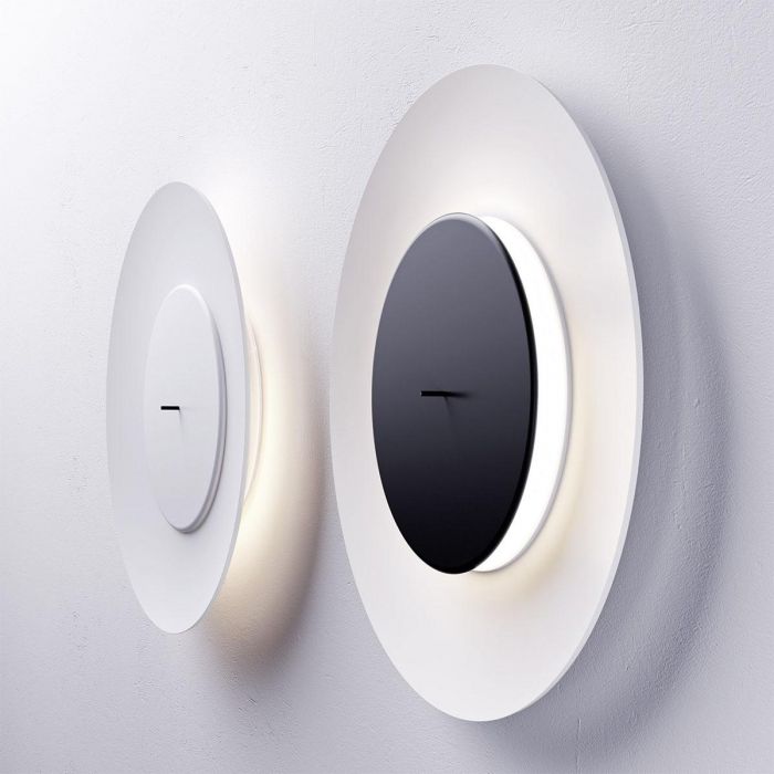 Imaginée par le designer français Ferréol Babin, l'applique lunaire crée un effet lumineux surprenant, inspiré du phénomène produit par une éclipse. Elle se compose de deux disques bien distincts : le premier central étant un réflecteur en aluminium blanc alors que le second joue le rôle de diffuseur grâce à un matériau en méthacrylate. En changeant la position de ce disque, on peut moduler l'intensité lumineuse, et créer différents effets : exactement comme lors d'une éclipse ! Innovante et très graphique, l'applique Lunaire vous permet d'interagir avec la lumière pour faire évoluer la puissance du flux lumineux selon vos besoins. Cette applique tendance est à la fois fonctionnelle, design et sensible, elle donne envie de contempler la lumière émise, d'observer les nuances et les ombres qu'elle génère.
