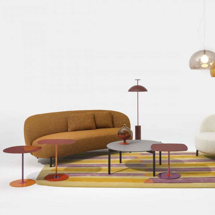 LUNAM est une collection imaginée pour la pièce de vie qui raconte les atmosphères oniriques des paysages lunaires. Une structure essentielle en métal peint soutient les volumes généreux des assises rembourrées.
