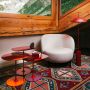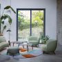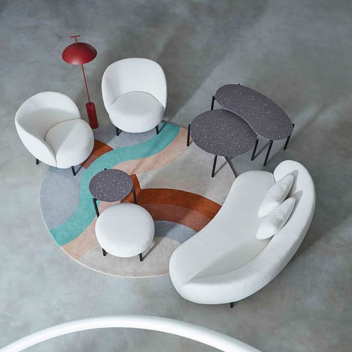 LUNAM est une collection imaginée pour la pièce de vie qui raconte les atmosphères oniriques des paysages lunaires. Une structure essentielle en métal peint soutient les volumes généreux des assises rembourrées.