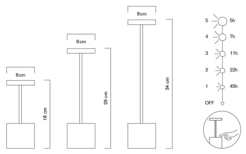 La Luxciole vous accompagne partout, d'un doigt léger vous passez de la nuit noire au clair obscur puis à la pleine clarté, sans jamais éblouir.