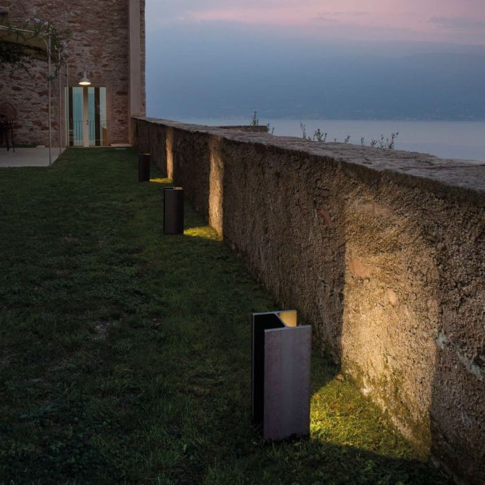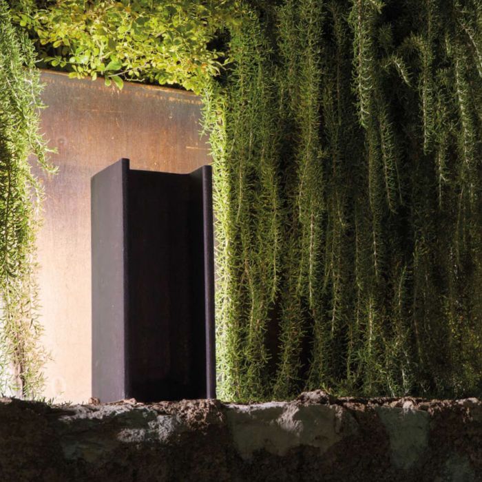 Lampe à poser de Nemo en métal brut, créé par le designer français Rudy Ricciotti, lauréat du grand prix national de l'architecture en 2006. Ce luminaire est traité avec vernis de protection pour l'extérieur, et propose un éclairage chaud et diffus.