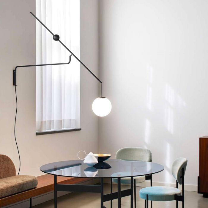 La version murale est équipée de deux bras articulés qui, exploitant le mouvement du contrepoids, donnent une grande flexibilité dans le placement du diffuseur.