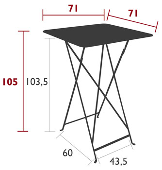 Mange-debout Bistro de Fermob. Fermob vous présente le mange-debout 71 x 71 cm de la collection Bistro en métal. La collection Bistro crée en 1889 ne cesse de séduir avec son mobilier intemporel. Le mobilier pliant, robuste, léger et facile à transporter trouve sa place sur les terasses de café, dans un coin de lecture ou encore dans votre jardin. Cette collection pleine de simplicité vous est proposée dans de nombreux coloris acidulés apportant la gaité ou que vous soyez. Adapté pour l'intérieur et l'extérieur, il deviendra rapidemment indispensable à votre quotidien. Son design minimaliste plaît aux tout petits autant qu'aux grands. Le mange debout 71 x 71 cm de la collection Bistro est décliné en de nombreux coloris tendances… et n’a pas fini de séduire!