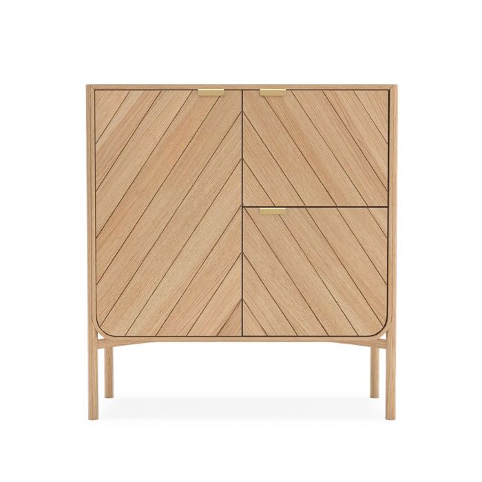 Charmeur et solaire, le vaisselier Marius a fière allure. Son design à la fois rétro et contemporain l’impose en vaisseau amiral de votre pièce de vie. Impossible, comme dans un romain de Pagnol, de résister à la beauté irradiante de Marius. Marius s’apparente à la coque d’un bateau et les rainures géométriques sur sa façade semblent dessiner la voile du pavillon. Sa cale est divisée en trois compartiments fermés par des portes à charnières et, derrière chacune d’elle, une ou plusieurs étagères vous permettent de ranger votre belle vaisselle. Fabriqué au Portugal dans un atelier d’ébénisterie, en plaqué chêne (naturel ou teinté noir) ou noyer, Marius est soutenu par un superbe piètement croisé, une structure de quatre mâts en bois massif. Marius est une création du designer français de Pierre-François Dubois.