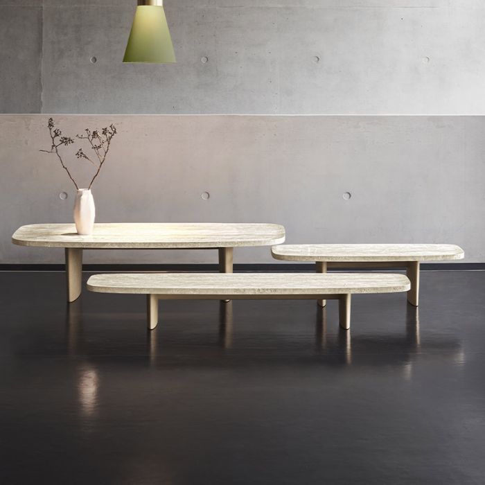 Matéria évoque le besoin intuitif de caresser ses surfaces et de ressentir leur toucher naturel. Le design à l'origine purement expérimental du designer allemand Christian Haas a été étendu à un trio en collaboration avec ClassiCon. Matéria est disponible en trois tailles différentes et actuellement deux variantes de surface.