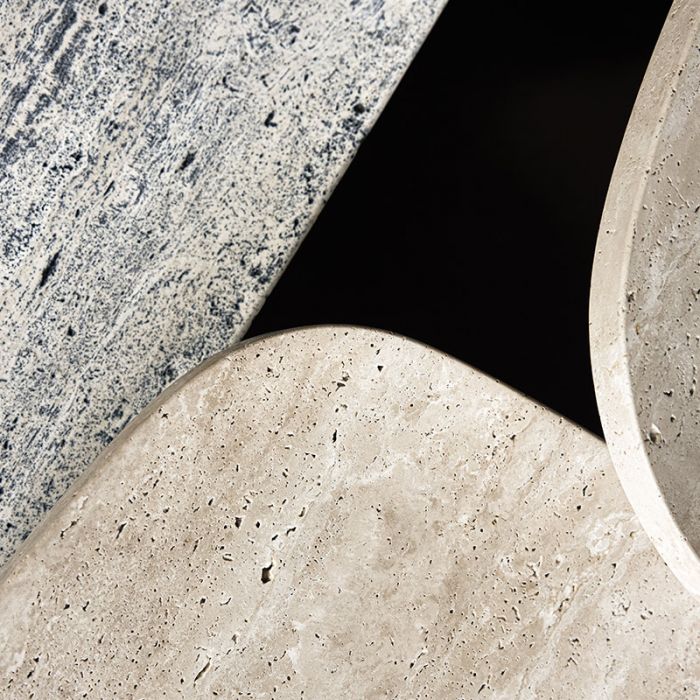 Plateau : fraisé en travertin naturel ou empreintes de couleur indigo
