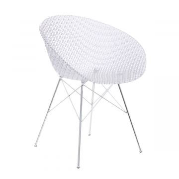 Matériaux : assise polycarbonate transparent ou teinté dans la masse, structure en acier peint ou inox