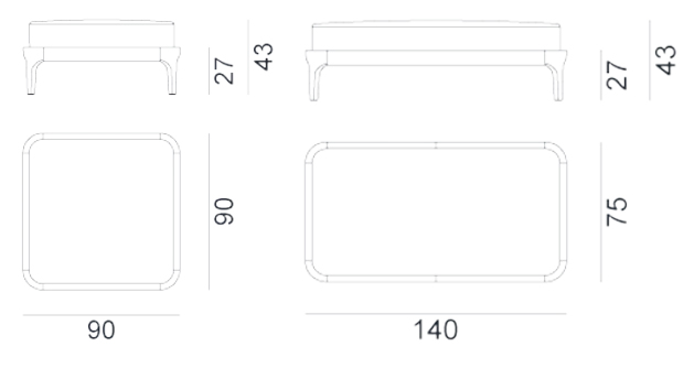 Taille 1 : L 90 x larg. 90 x H 43 cm