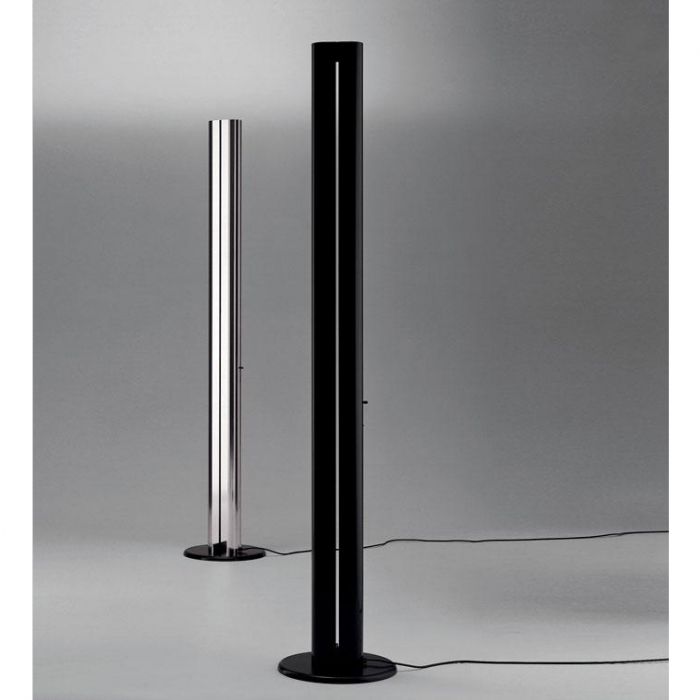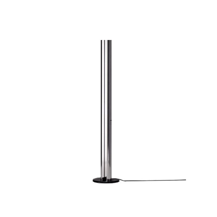 Ce lampadaire classique au design intemporel des années 70 se distingue par sa répartition de la lumière réfléchie indirectement. Son pied droit est en acier enrobé d'une résine synthétique thermoplastique, et la tige est en aluminium anodisé brillant ou laqué noir avec régulateur d'intensité lumineuse. Ce lampadaire offre une touche épurée à votre intérieur. La lumière émane dans votre intérieur tout en étant minimaliste et design.