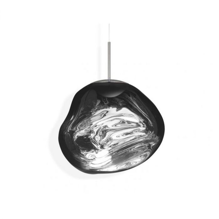Avec Melt, nos expériences dans le domaine technologiquement avancé de la prise de métallisation de vide prennent une nouvelle dimension. Melt Copper est un globe déformé né de notre collaboration avec le collectif radical suédois Design Front. Les reflets de lumière autour des surfaces inégales créent un effet spectaculaire dans le verre soufflé. Melt Copper est translucide quand il est allumé et procure un effet miroir une fois éteint. La nuit, cette suspension émet une lumière attractive et hallucinogène, apparentée aux images du cosmos du télescope Hubble.