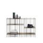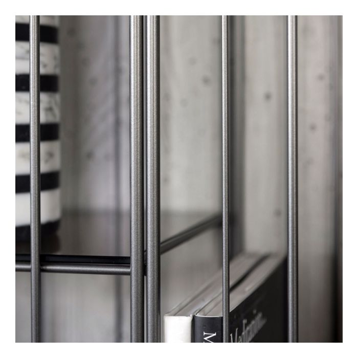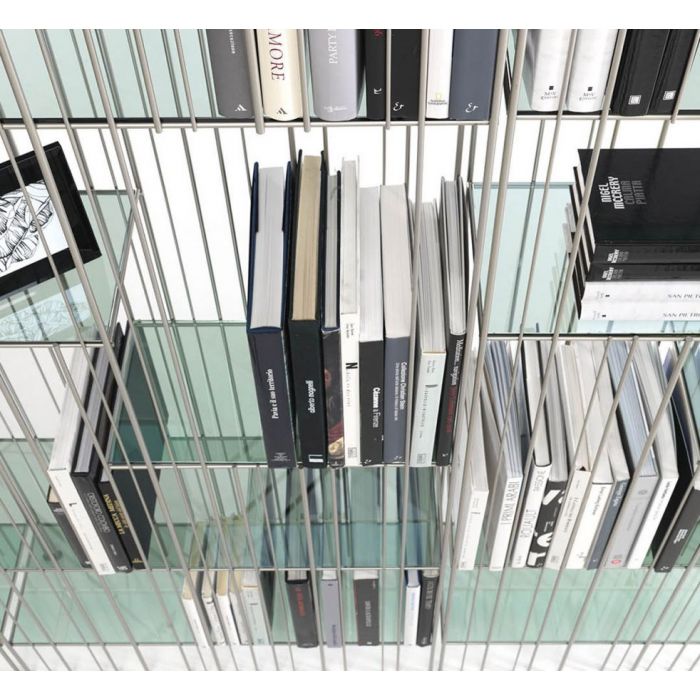 Metrica est une bibliothèque murale en métal avec étagères en verre conçue par CtrlZak pour la marque Mogg, faite de tiges d’acier avec finition titane ou brunie et d’étagères (deux finitions verre vert ou verre brun) dans un cristal transparent. La structure simple exploite le traitement industriel de la barre ronde dans différents diamètres et selon une cloison irrégulière.