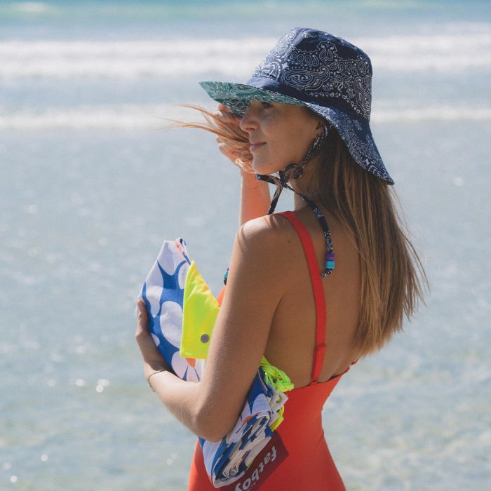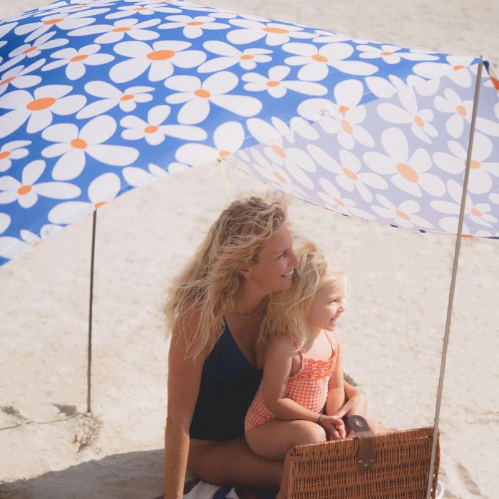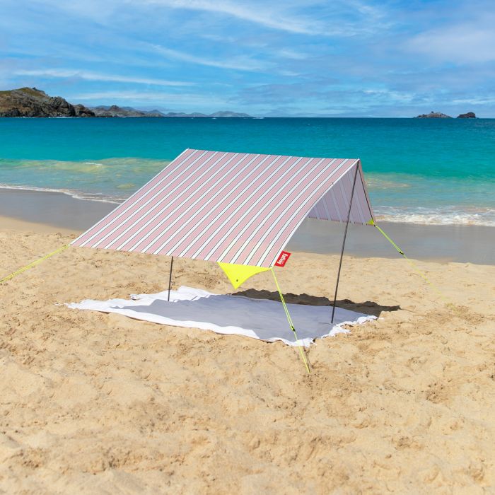Protégez-vous en seulement 90 secondes. Le pare-soleil portable Miasun pèse un peu plus d'un kilo et se glisse dans n'importe quel sac ou valise. Accepté comme bagage à main. Facile à assembler avec ses poteaux pliants en aluminium et sa toile de coton, disponible en couleurs et motifs variés. Cette tente de plage ultra-intelligente est assez grande pour accueillir deux adultes et deux enfants. Fournit environ 3 m² d'ombre. 3 façons différentes de la monter.