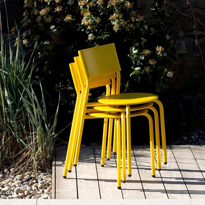 La chaise de jardin SSDr possède une assise et un dossier en plastique polypropylène recyclé, un plastique aux nombreuses applications industrielles : récipients alimentaires, pièces automobiles ou appareils électroménagers. Un traitement anti-UV a été appliqué au plastique de la chaise pour empêcher les variations de couleurs. Les piètements de la chaise sont en acier thermolaqué et protégés avec un traitement anticorrosion haut de gamme pour protéger l’acier des agressions extérieures comme l’humidité, le soleil, le froid ou la chaleur. Des patins viennent s’ajouter aux piètements de la chaise outdoor afin de l’isoler du sol et de l’humidité. Cette chaise de jardin design est également empilable, pratique pour le rangement !