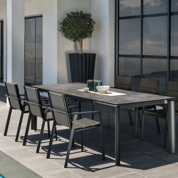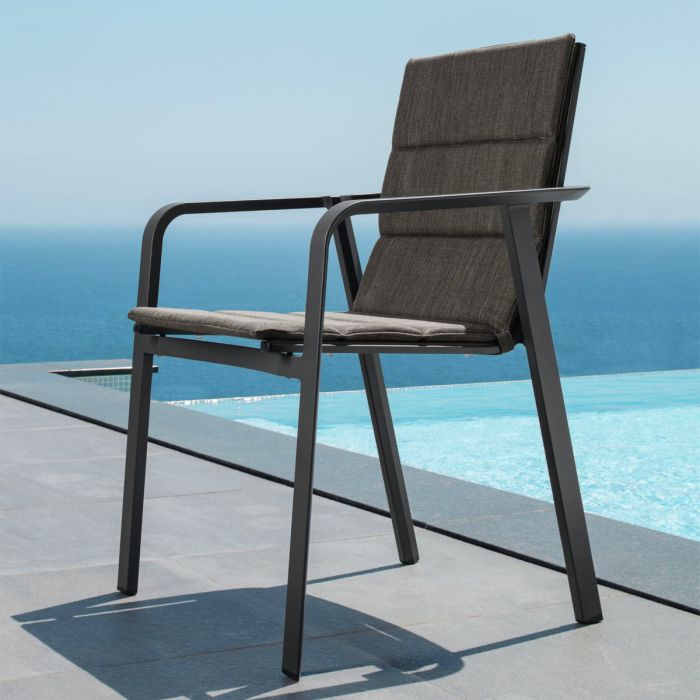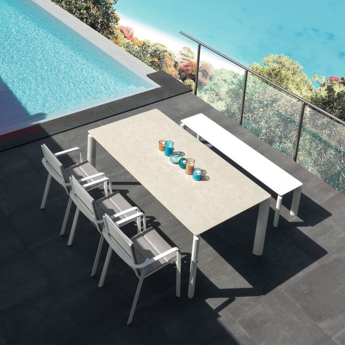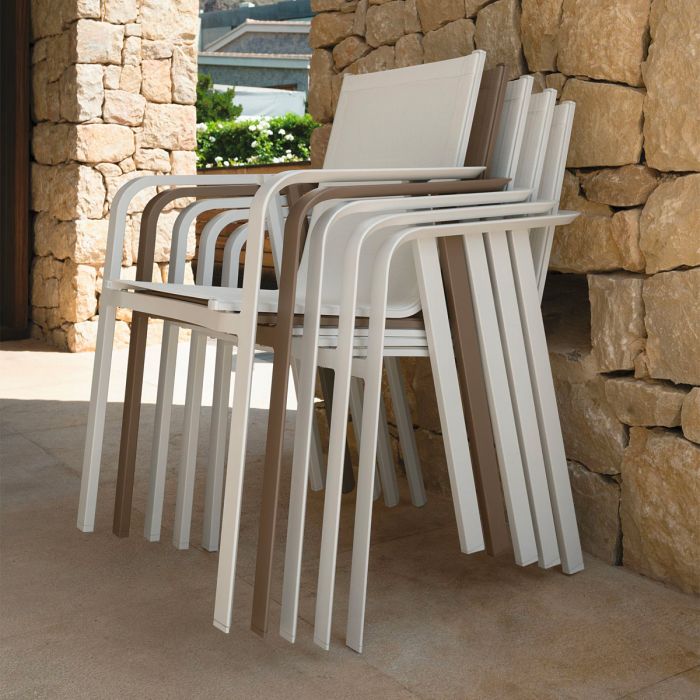 Élégance romantique et attention aux détails sont les éléments distinctifs de la chaise d’extérieur Milo. Structure en aluminium peint à la poudre et assise en textilène, un matériau synthétique capable de résister aux efforts de compression, aux déchirures, aux agents atmosphériques et aux rayons UV. La chaise est empilable.