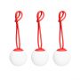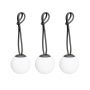 Mini bolleke set de Fatboy. Fatboy présente le Bolleke Mini Set : trois petites lampes LED sans fil emblématiques dans un seul ensemble. Elles sont petites en taille, mais grandes pour créer une ambiance parfaite. À l’intérieur comme à l’extérieur, suspendez-les où vous voulez grâce à leur boucle en silicone pratique. Grâce à leur design sans fil, fini les tracas avec les câbles. Avec trois modes d’éclairage et une autonomie pouvant aller jusqu’à 24 heures, vous créez facilement l’ambiance idéale pour toute occasion. Elles se rechargent facilement avec un seul câble USB permettant de connecter les trois lampes en même temps. Parfaites pour des soirées prolongées, des dîners romantiques ou même comme veilleuse.