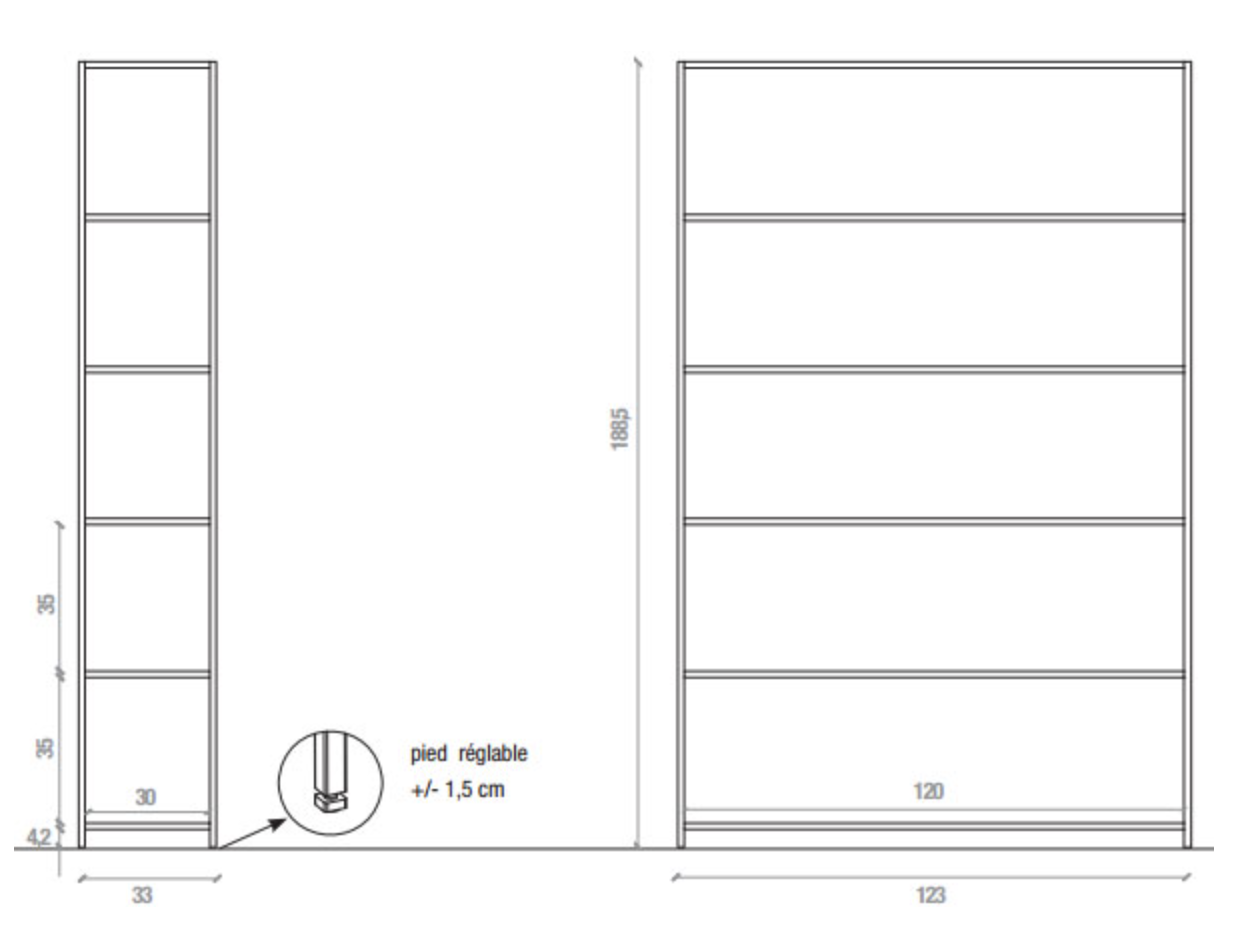 Matériaux : montants et étagères en aluminium extrudé et assemblés grâce à un système invisible de jonction, à même de conférer à la structure une parfaite stabilité et une haute résistance aux charges