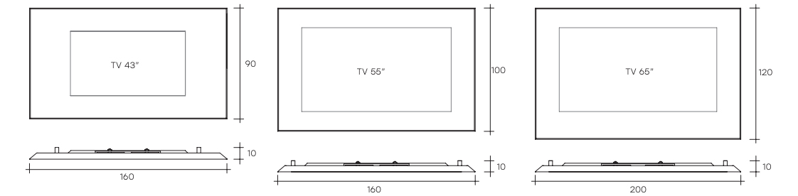 Taille 1 : L 160 x H 90 x Prof. 10 cm