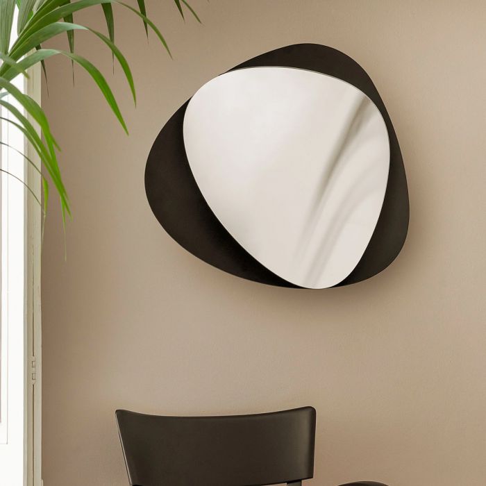Matériaux : miroir, encadrement en acier coloré à la résine époxy noir