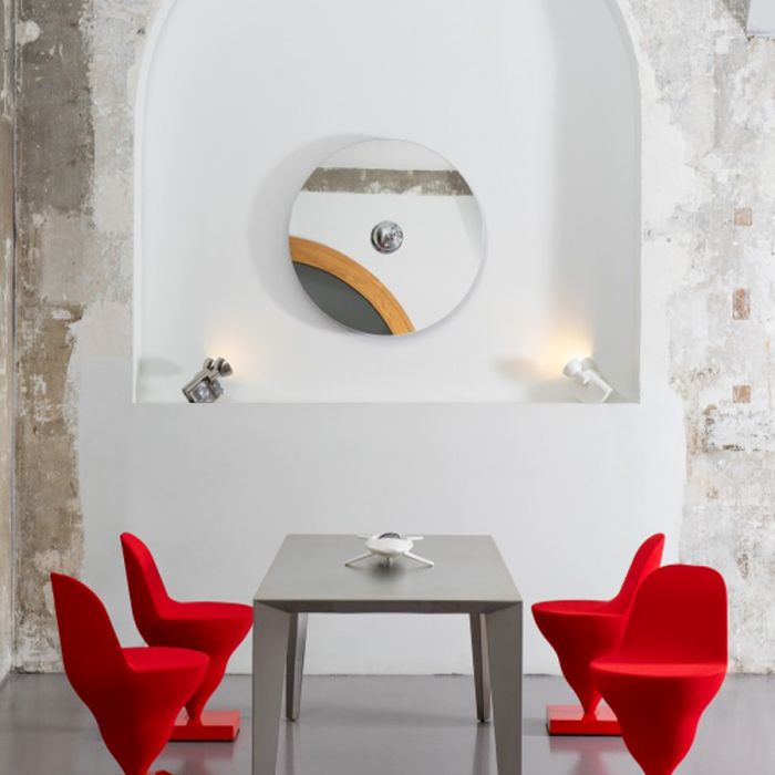 La collection de miroirs Sphera de Jean-Baptiste Fastrez est une interprétation contemporaine d’un dispositif technique pour créer des murs miroirs. Très en vogue dans la première moitié du 20 ième siècle la patte de miroir a depuis été réduite à sa seule fonction pour n’être plus aujourd’hui qu’une sorte de fixation à miroir vendu au rayon salle de bain des magasins de bricolage. Véritable système Sphera propose de renouer avec la tradition décorative de cet élément technique invisibilisé en lui offrant une dimension sculpturale inattendue et une flexibilité hors normes.