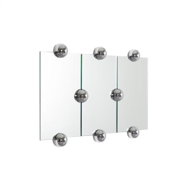 La collection de miroirs Sphera de Jean-Baptiste Fastrez est une interprétation contemporaine d’un dispositif technique pour créer des murs miroirs. Très en vogue dans la première moitié du 20 ième siècle la patte de miroir a depuis été réduite à sa seule fonction pour n’être plus aujourd’hui qu’une sorte de fixation à miroir vendu au rayon salle de bain des magasins de bricolage. Véritable système Sphera propose de renouer avec la tradition décorative de cet élément technique invisibilisé en lui offrant une dimension sculpturale inattendue et une flexibilité hors normes.