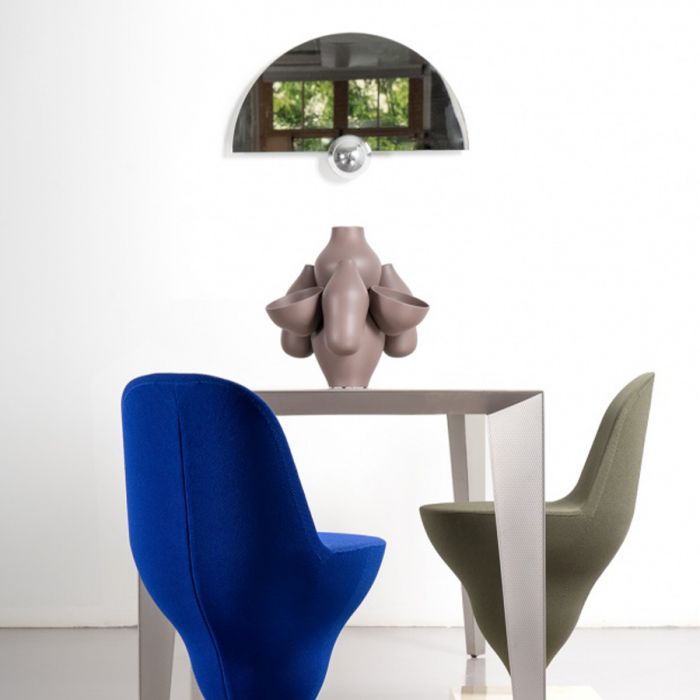 La collection de miroirs Sphera de Jean-Baptiste Fastrez est une interprétation contemporaine d’un dispositif technique pour créer des murs miroirs. Très en vogue dans la première moitié du 20 ième siècle la patte de miroir a depuis été réduite à sa seule fonction pour n’être plus aujourd’hui qu’une sorte de fixation à miroir vendu au rayon salle de bain des magasins de bricolage. Véritable système Sphera propose de renouer avec la tradition décorative de cet élément technique invisibilisé en lui offrant une dimension sculpturale inattendue et une flexibilité hors normes.