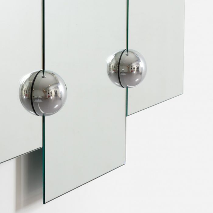 La collection de miroirs Sphera de Jean-Baptiste Fastrez est une interprétation contemporaine d’un dispositif technique pour créer des murs miroirs. Très en vogue dans la première moitié du 20 ième siècle la patte de miroir a depuis été réduite à sa seule fonction pour n’être plus aujourd’hui qu’une sorte de fixation à miroir vendu au rayon salle de bain des magasins de bricolage. Véritable système Sphera propose de renouer avec la tradition décorative de cet élément technique invisibilisé en lui offrant une dimension sculpturale inattendue et une flexibilité hors normes.
