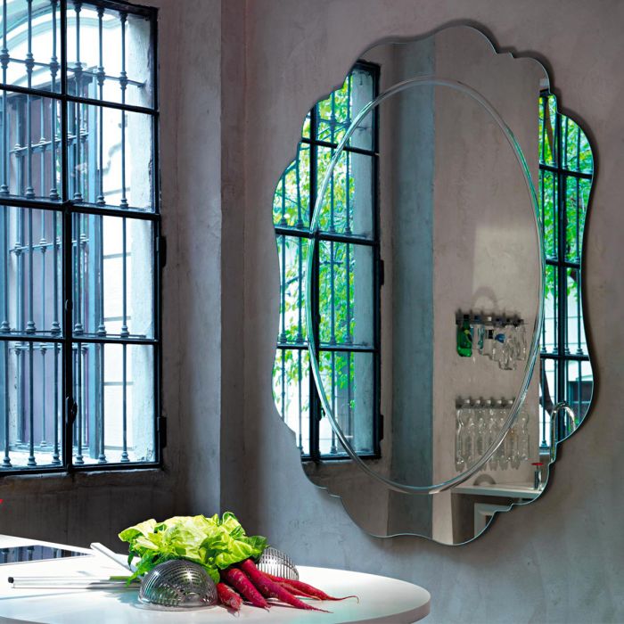 Regio et Regino, les miroirs muraux de Paola Navone se réfèrent aux archétypes du XVIIIe-XIXe siècle, capturent leurs traits caractéristiques et deviennent une réinterprétation moderne. Façonnés selon les lignes classiques, ils ont une décoration frontale argentée qui renforce leur raffinement. Alternativement positionnés horizontalement ou verticalement, grâce à leur forme ils s'adaptent à tous les contextes. Aux traditionnels ils donnent la légèreté du monde des contes de fées, aux contemporains ils donnent grâce et élégance. Raffinée dans le salon, enchantée dans la chambre, accueillante dans l' entrée, imposantedans la salle de bain, Regio (et Regino) sait être parfait aussi bien à la maison que dans les espaces contract.