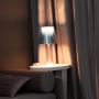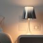 Coloris : noir aluminisé, transparent, tissu, transparent argent (il devient transparent sur la partie supérieure lorsque la lampe est allumée)