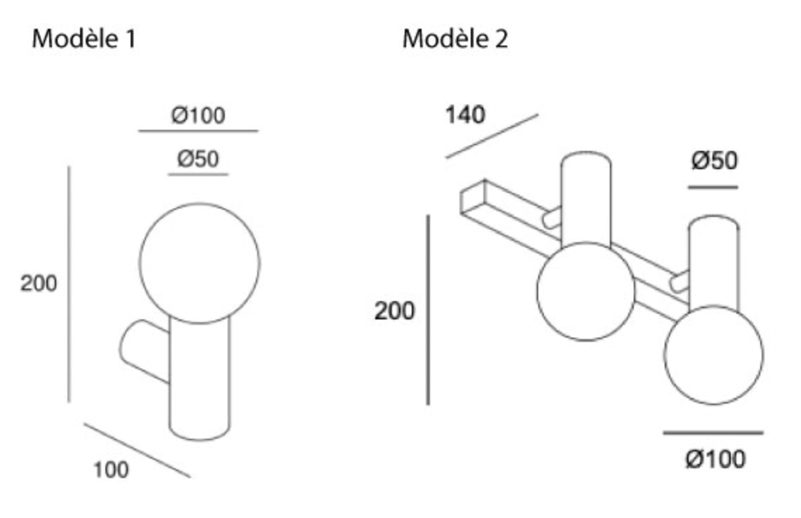 Modèle 1 : H 20 x Prof. 10 x Diam. 10 cm