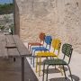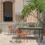 La collection Mom de Coirier s’inspire des plateaux traditionnels japonais « Suiban ». La structure est entièrement réalisée en tubulaire d’acier Fe360, tandis que l’assise et le dossier, caractérisés par la ligne graphique particulière de ces plateaux, sont en tôle emboutie d’acier galvanisé. Finition Emu-Coat.