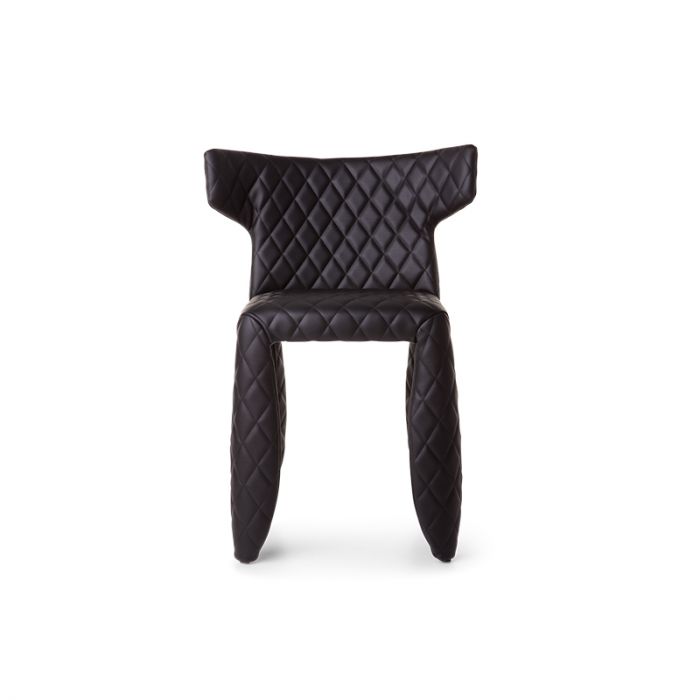 Une chaise douce, gonflée et élégante comme symbole de la bataille éternelle entre des forces opposées qui ont lieu dans la vie et peuvent être facilement reconnues à l'intérieur de nous-mêmes, si nous avons le courage d'ouvrir les yeux. Angoissant? Pas du tout! Une fois assis, vous oubliez le monstre et profitez du confort et de la douceur de la chaise. La version signature, le leader intrépide de notre famille Monster, est recouverte de cuir synthétique noir Moooi Original avec un visage brodé.