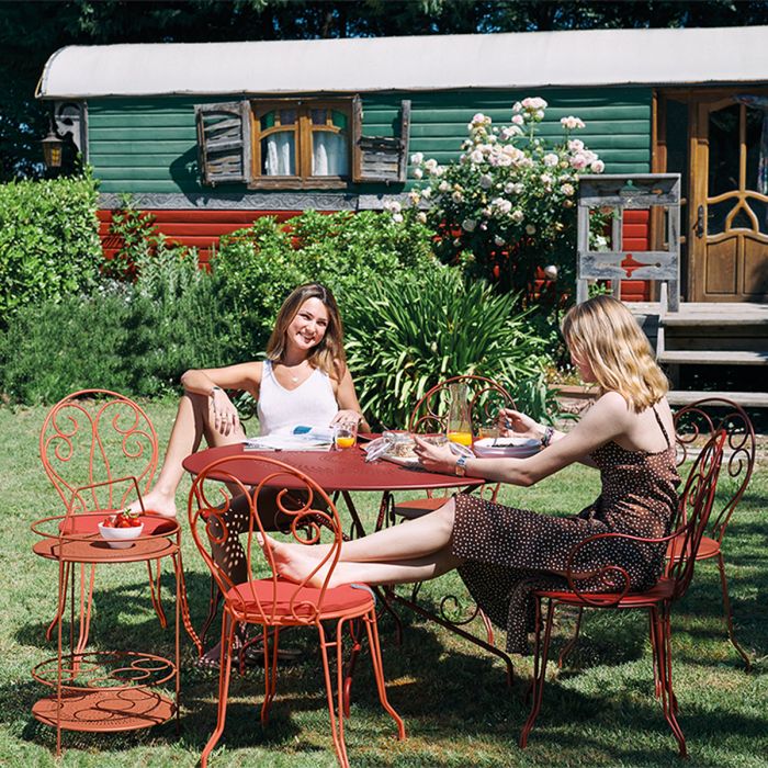 Montmartre chaise de Fermob. Une structure en fil acier tout en légèreté.. des volutes pleines de fraîcheur.. une largeur d’assise confortable… une empilabilité parfaite.. la chaise Montmartre allie à un produit de tradition le confort d’usage d’aujourd’hui.