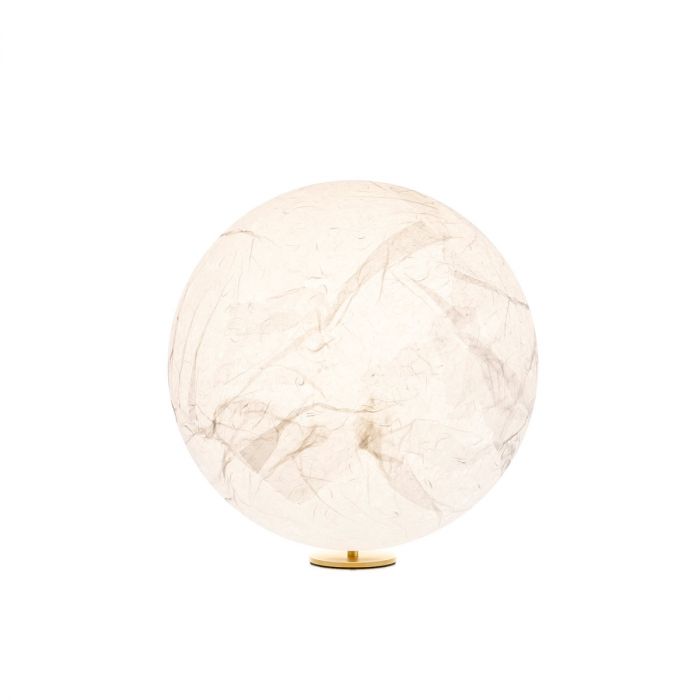 Moon T de Davide Groppi. C'est magique. Et cela fonctionne toujours, comme tous les tours de magie. Vue d’ici bas la lune présente mille nuances. Et chaque fois qu’elle revient, parfaitement pleine, elle provoque un petit sursaut chez ceux qui l’observe. Moon naît d’un rêve, celui de porter la lune dans les logements. La surface de papier japonais, fait à la main, rend chaque pièce unique.
