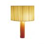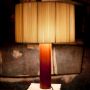 Matériaux : Pied en bois de sapelli, Abat-jour en galons de coton écru bordés de liserés de soie naturelle
