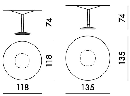 Matériaux : plateau rond en verre, pieds aluminium peint moulé sous pression