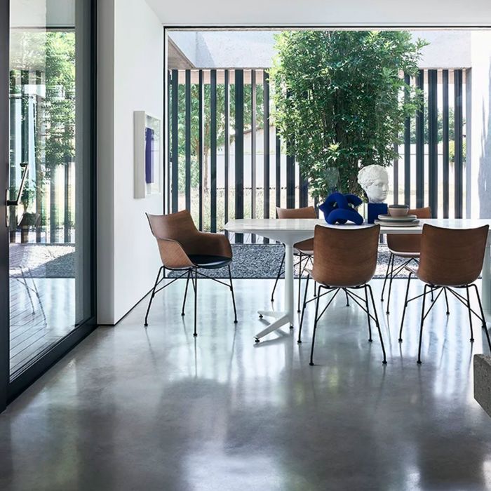 Multiplo XL rectangular Outdoor de Kartell par Antonio Citterio. Multiplo est une très large collection de tables, aux applications transversales, pensées pour être personnalisées, en jouant sur les formes (carrées aux coins arrondis, rondes et ovales) et la combinaison de piètements (piètement central, à deux, trois ou quatre branches) et de plateaux (en grès uni ou finition marbre et verre).