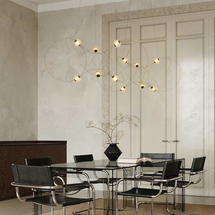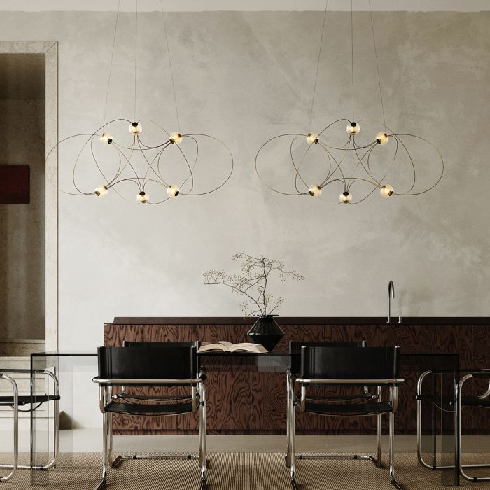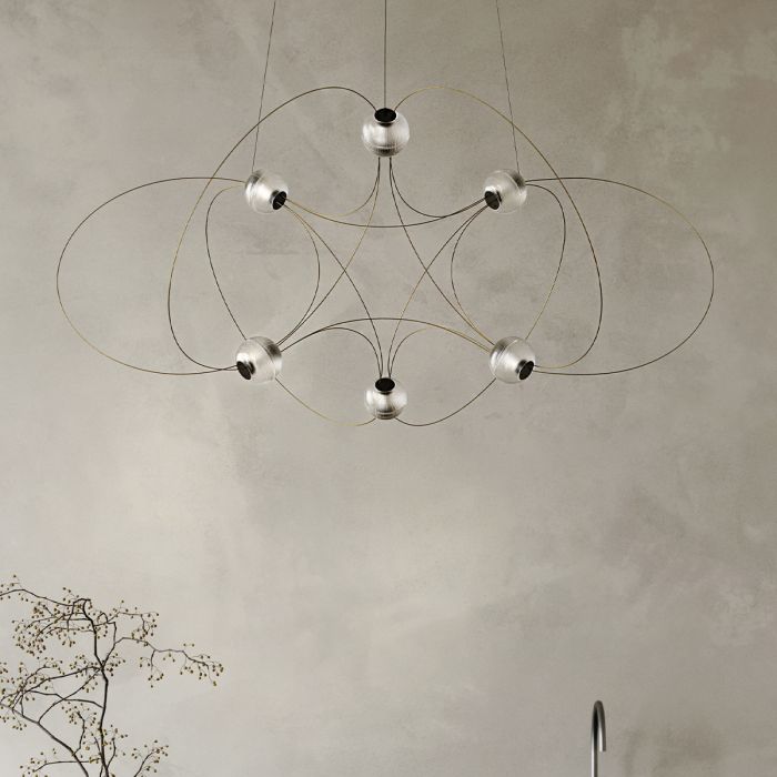 Peintre et designer, Bruno Munari (1907-1998), fut l’un des principaux acteurs de l’Op’ Art en Italie. Inventeur poétique des Machines Inutiles et des Livres Illisibles, créateur graphique chez Campari, designer de la “chaise pour visites courtes”, Munari fut aussi le créateur de nombreux jeux d’éveil et de construction présentés et vendus en coffrets de carton et livres-boîtes, avec livret d’instruction illustré. Devenus des icônes absolues du design éducatif, ces Prelibri et autres boîtes MC1 ont inspiré le designer allemand Lutz Pankow et DCWéditions pour emballer et livrer le système d’éclairage Munari, sorte de Spirographe cosmique satellisé par des planètes-lumières posées sur structure porteuse et conductrice. Cet ensemble d’atomes lumineux gravite à cinq mètres et pour ce faire, il suffit de suivre la notice de montage contenue dans la boîte carton plate, évidemment référée à celles des jeux de Munari. D’où le nom, comme un hommage en clin d’œil...