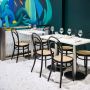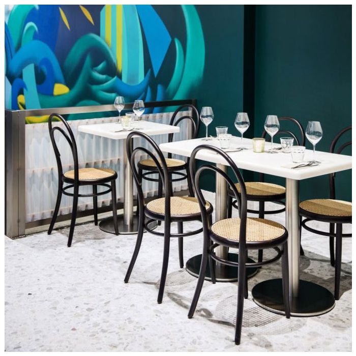 Le grand classique de la marque. Le produit le plus connu et vendu. Conçu par Michael Thonet en 1860, la chaise n° 14 a immédiatement été qualifiée de chaise de bistrot. Minimaliste par l'usage du matériau et par le nombre de pièces le constituant, la numéro 14 est le résultat d'une recherche technologique de près de vingt ans. Simple, polyvalente et toujours à jour, elle est considérée comme le premier exemple de design industriel. Sa structure est composée d'éléments en hêtre massif cintrés à la vapeur magistralement cintrés. Le dos et les jambes arrières prennent forme à partir d'un seul morceau de bois. Disponible avec différentes variantes de siège.