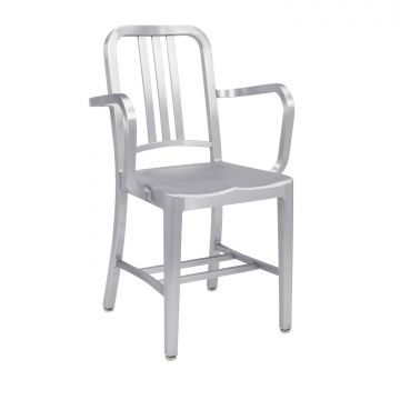 Navy est une collection de chaise de la marque Emeco. D'abord construit pour être utilisé dans les sous-marins en 1944, le Navy Chair est en production continue depuis. Avec le fameux procédé en 77 étapes, nos artisans prennent de l'aluminium doux et recyclé, le façonnent à la main et le soudent, puis le tempèrent pour plus de solidité. Enfin, la chaise est anodisée pour une finition durable. Les chaises de la marine sont garantis à vie. Intemporelle, les chaises Navy sont admirées. Ces chaises traversent les générations et les cultures grâce à un design simple et soigné. La chaise Navy est un classique durable d'Emeco.