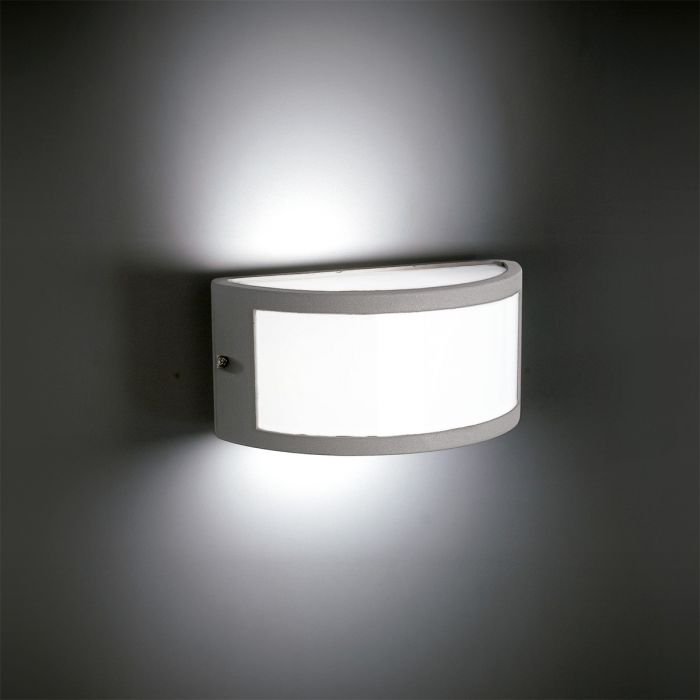 Applique d’extérieur de style moderne en aluminium et diffuseur polycarbonate opalin.