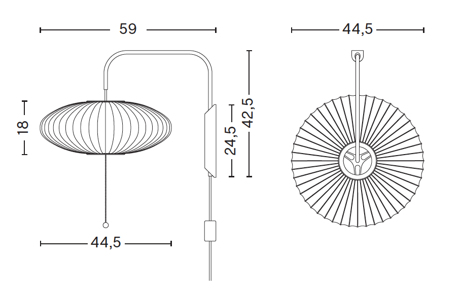L'applique murale Nelson Saucer fait partie de la série Nelson Bubble Lamp. Un support mural en noyer et un bras en acier fixent le large abat-jour en forme de soucoupe à un mur, remplissant n'importe quel intérieur d'une lumière chaude et diffuse. Le bras peut être ajusté de gauche à droite et de haut en bas, sans avoir à changer sa position sur le mur.