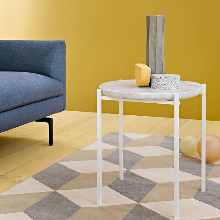 Petite table avec cadre en acier peint dans les tons noir ou blanc. Plateaux disponibles au choix en marbre blanc de Carrare, en marbre noir Marquinia ou en marbre Emperador, avec vernis de protection antitache, en polyester transparent mat. Les dalles de marbre de Carrare, Marquinia ou Emperador sont opaques, chaudes et agréables au toucher, supportées simplement sur une base métallique minimale en noir ou blanc.