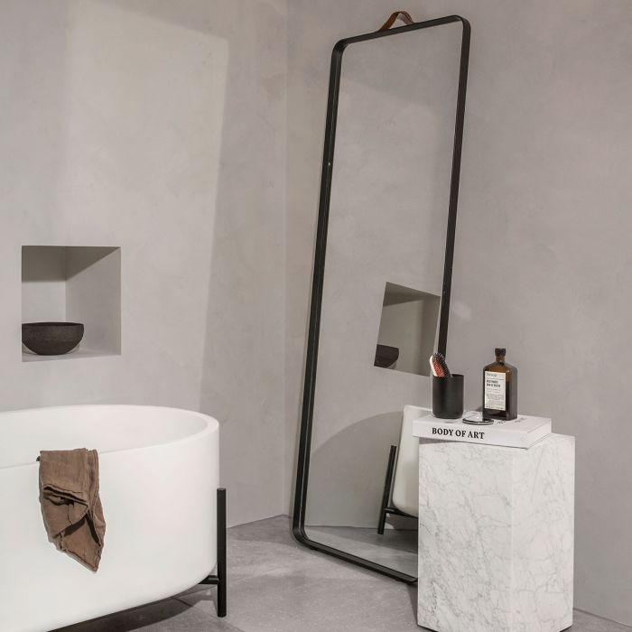 Conçu pour s'appuyer contre le mur, ou pour se tenir ou accrocher où vous le trouverez le mieux à sa place, découvrez le miroir Norm Floor de Menu.