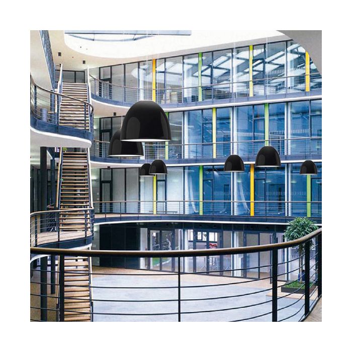 Nur mini gloss a été créé par Ernesto Gismondi pour Artemide. La suspension Nur Mini revient dans une nouvelle version laquée ultra chic. La finition parfaitement lisse et brillante apporte élégance et sophistication au modèle classique. Cette suspension en forme de cloche habille l'espace avec une grande modernité. Nur Mini fonctionne avec une source halogène. La coupole en aluminium est fermée (dans la partie inférieure) par un disque-diffuseur. L'éclairage directe est soutenu sans être éblouissant. Nur Mini peut donc être facilement positionnée au dessus d'une table sans éblouir les convives... Une calotte supérieure en verre sablé laisse filtrer la lumière vers le haut et offre ainsi un éclairage indirect.