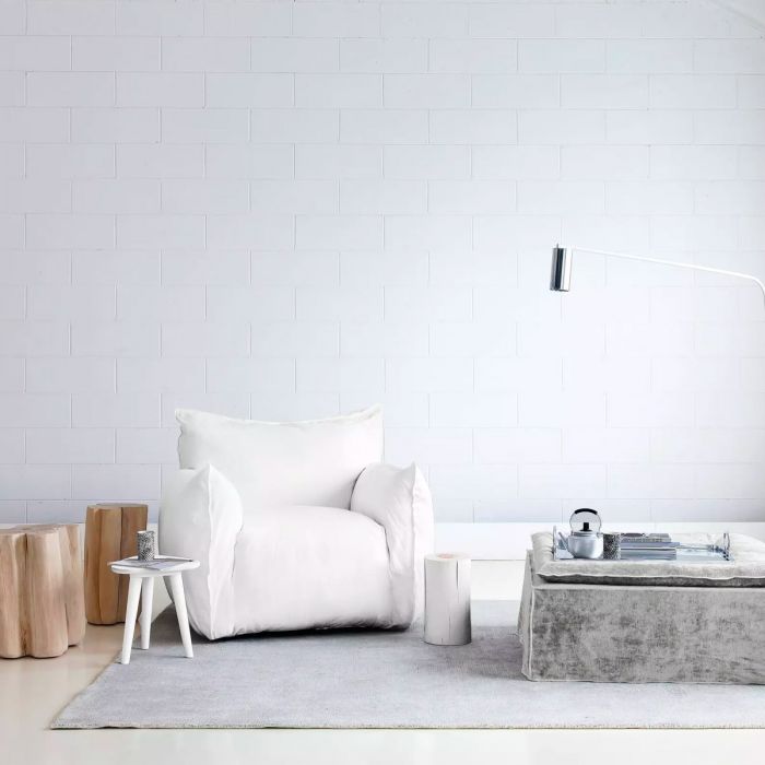 Nuvola 05 fauteuil de Gervasoni par Paola Navone. Famille de fauteuils aux formes tendres et attrayantes, Nuvola possède une esthétique qui invite à s’y plonger : les accoudoirs hauts accueillent une assise profonde comme une embrassade pour créer une véritable impression de cocon. Disponibles en deux tailles, ils sont rembourrés de mousse de polyuréthane de différentes densités et recouverts d’une courtepointe matelassée garnie de duvet d’oie et de flocons en fibre de polyester. La housse, amovible, est ornée de coutures apparentes qui dessinent le profil du produit et peut être réalisée avec tous les revêtements du catalogue, pour un maximum de polyvalence.