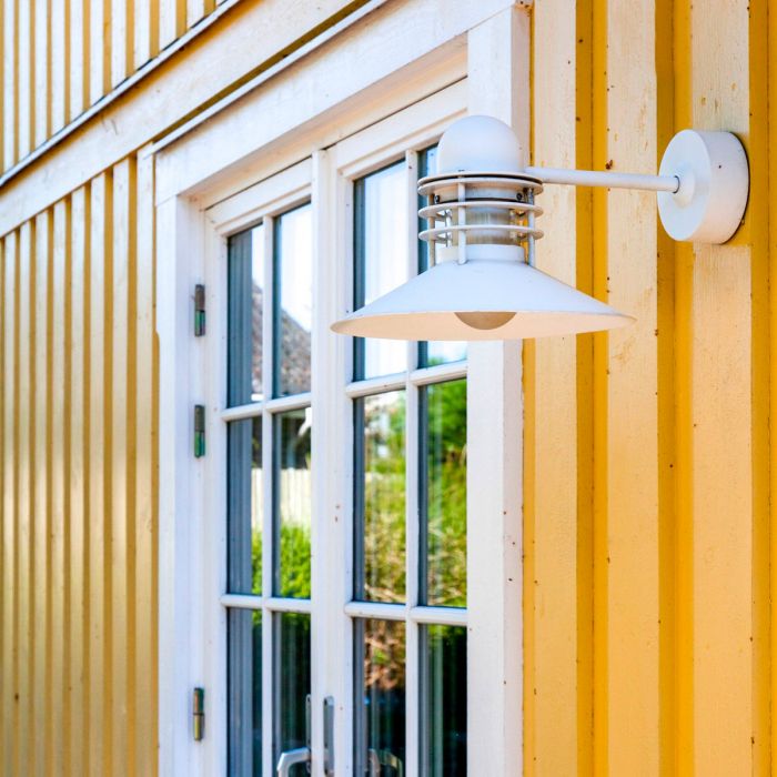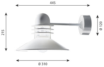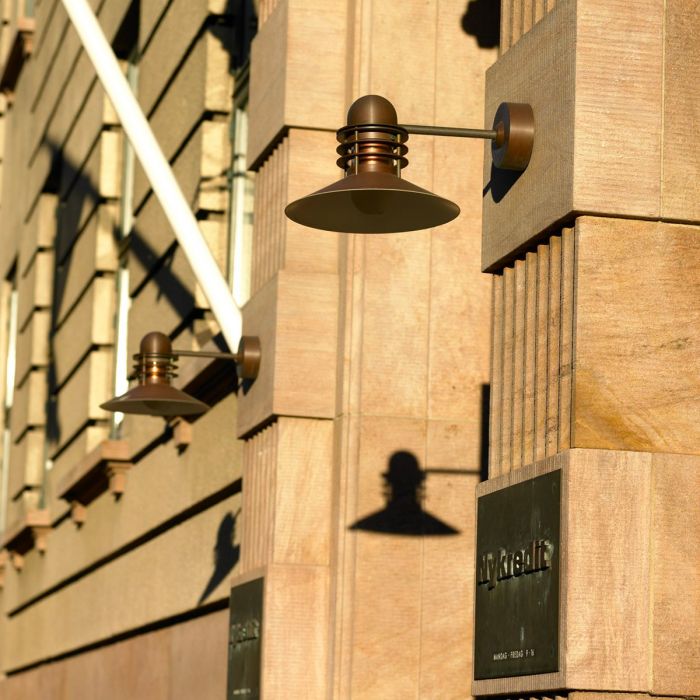 L’applique Nyhavn a reçu le troisième prix du concours Louis Poulsen pour l’éclairage d’extérieur. Avant ce concours, Alfred Homann avait travaillé sur certains croquis et maquettes, par conséquent, à l’aide de son collègue Ole V. Kjær il a pu préparer le matériel pour la candidature en seulement cinq jours. Voici comment Alfred Homann explique l’idée à la base de l’applique : « Il était important que la taille du luminaire soit plus petite et moins visible que les luminaires déjà disponibles sur le marché à l’époque. Pour cette raison, des formes familières et classiques furent choisies. La lumière sortant du luminaire est caractérisée par l’abat-jour conique qui la dirige vers le bas. Les petits anneaux entre la partie supérieure arrondie et l’abat-jour conique génèrent un éclairage de guidage. Les anneaux ont été dimenssionnés tant en hauteur qu’en largeur: 1. Afin d’éviter la formation de raies de lumière sur les surfaces verticales, 2. Pour s’éclairer l’un l’autre et 3. Pour diriger une petite quantité de lumière sur la partie supérieure de l’abat-jour conique. Si les proportions ou l’emplacement de la source lumineuse était modifié un tant soit peu, toute l’idée tombait à l’eau ! ».
