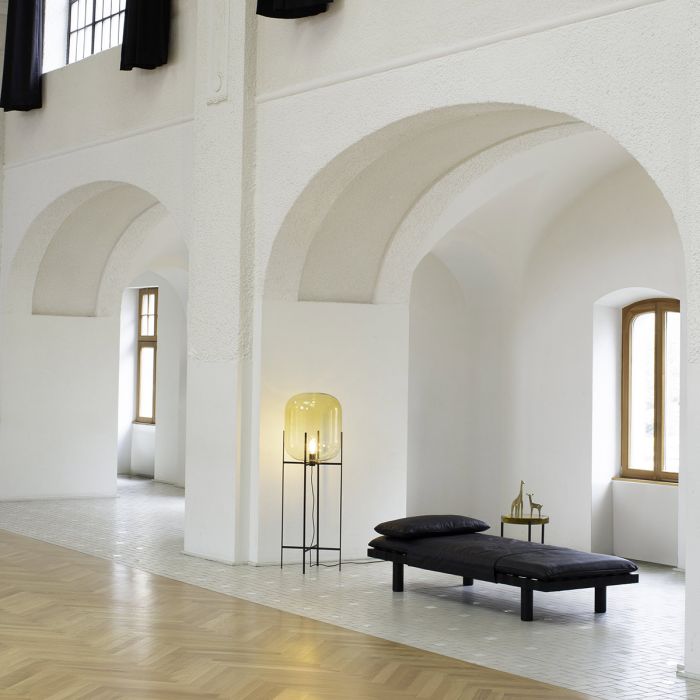 Oda de Pulpo par Sebastian Herkner. Directement inspiré des monuments industriels photographiés par la célèbre école Becher de Düsseldorf, Sebastian Herkner réunit pour oda la forme extérieure et la fonction intérieure d'une fonderie d'acier . Le résultat est un hommage lumineux à la lumière qui est une source de convivialité et est depuis devenu une référence en matière de design d'éclairage contemporain.