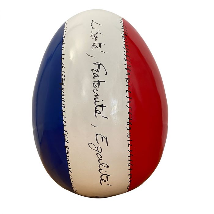 L'Œuf France d'Artypopart est bien plus qu'une simple sculpture : c'est un vibrant hommage aux valeurs de la République Française. Il arbore fièrement le drapeau Français avec la devise fondatrice : Liberté, Égalité, Fraternité. Cette devise, dont les principes de liberté et d'égalité sont inscrits dans l'article 1ᵉʳ de la Déclaration des droits de l'homme et du citoyen de 1789, est au cœur de l'œuvre. La forme de l'œuf elle-même symbolise la naissance et le renouveau, offrant une perspective positive et engagée sur l'avenir de la nation.